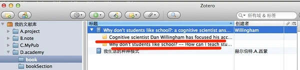 打开Zotero软件,我们会发现,之前鼠标定位的子类下面,会多出一个条目,如下图所示: