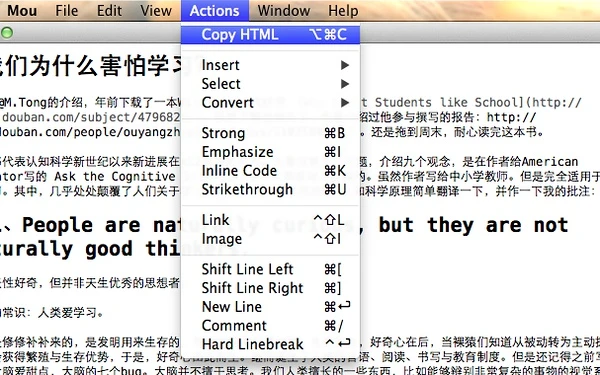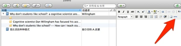 如果是Markdown与Mou用户,则不要在这里直接写笔记,代码会额外混乱,点击html选项: