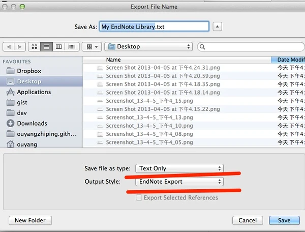 好的,我们有大量的文献是使用其它文献管理软件管理的,怎么导入?以最流行、最常用的Endnote为例。选择File=>Export,如下图所示,记得一定要将导出风格选为:Endnote Export: