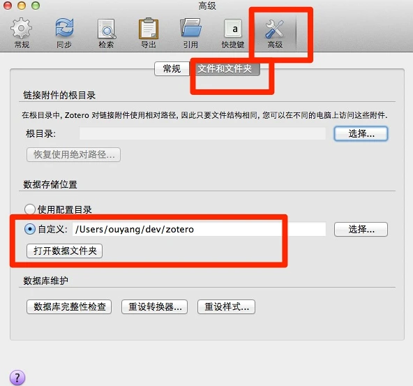 创建一个用来保存文献库的根目录,假设是:/users/ouyang/dev/zotero 继续配置: