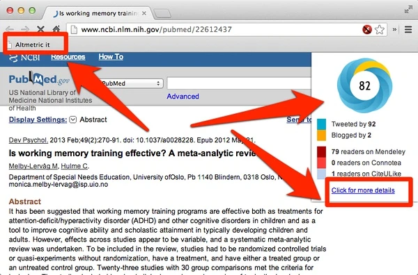 然后,当你在网页上读到任何一篇文献,让我们 以 @Zwai 在《心智简报》中翻译的这篇文章Is working memory training effective? A meta-analytic review为例。它的原文地址是:http://www.ncbi.nlm.nih.gov/pubmed/22612437