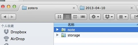 请记住!在老文文献管理软件Zotero基础及进阶示范 第一步建立的Dropbox下面的Zotero新建一个笔记目录!这是用来存放自动同步的笔记的,与存放PDF、电子书、网页快照的storage目录平级!如下图所示: