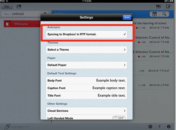 这么一来,通过Notability自带的与Dropbox自动同步的功能,就可以非常愉快与轻松地使用手指或者触控笔手写笔记。