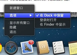 Dock的概念,类似于Windows的程序快捷菜单,你可以点击右键设置是否保留在这里: