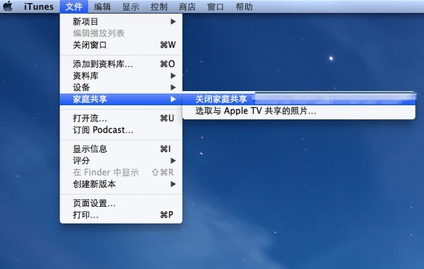 1)在iTunes中,打开家庭共享功能。