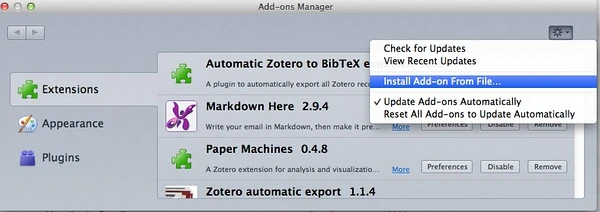 1、打开Zotero的【插件】窗口,位置如下所示: