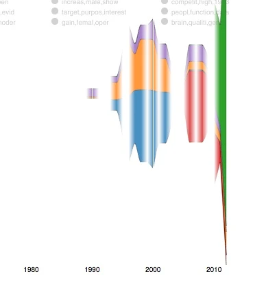前者可以看出该子类论文关键词;后者可看出从1990到2010年,该研究领域随时间的动荡。当然,我选择的示范数据不好,并不能体现出其厉害之处。