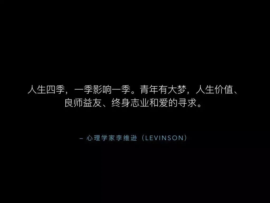 人生四季,一季影响一季。青年有大梦,人生价值、良师益友、终身志业和爱的寻求。