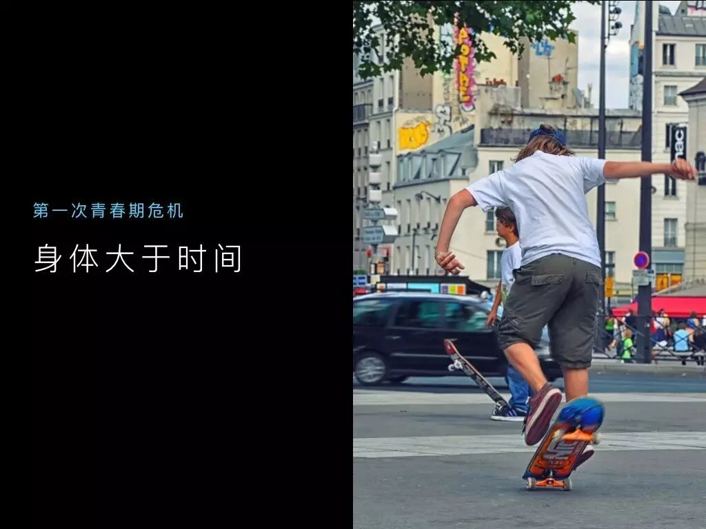 比如,12 岁到 24 岁时,你会体验第一次青春期危机,在这个时期,你的心理时钟几乎受制于社会钟。你不需要去考虑如何选择自己的时间节拍,社会已经将你安排好了。你的时间不属于你自己,你不得不按照社会和学校给你的时间安排去走。此时,你是超人,你可以连续多年,坚持早上早操;晚上自习。多年后,当你到了三十六岁时,你会觉得这是一件多么不可思议的事情,你会惊叹于自己的强大意志力(笑)。