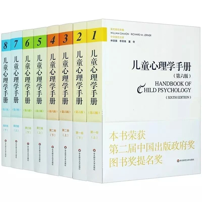如果前面7本你还没读过瘾,需要更专业的手册,就来全套八册的《儿童心理学手册》。这是一套国内发展心理学界通力协作翻译的手册,非常值得推荐。学术与应用价值兼具。