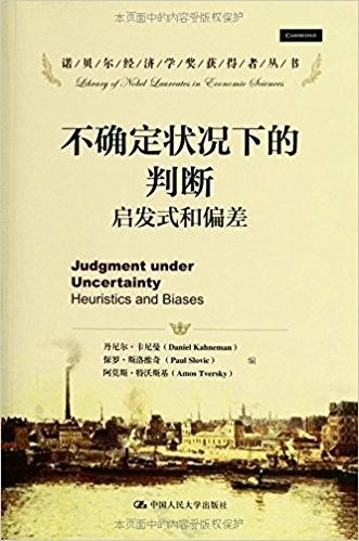 Kahneman教授荣获2002年诺贝尔经济学将主要归功于他对不确定条件下的人类决策行为的研究。他与Tversky合著的《不确定条件下的判断:直接推断与偏差》(Judgment under uncertainty: Heuristics and biases,1974)早已被公认为不确定条件下人类进行决策判断描述性理论方面的经典著作。