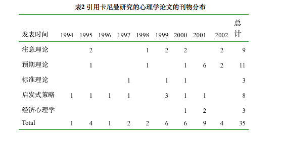 阳志平,时勘,王薇,试评卡尼曼经济心理学研究及其影响,心理科学,2003(04),P150-152