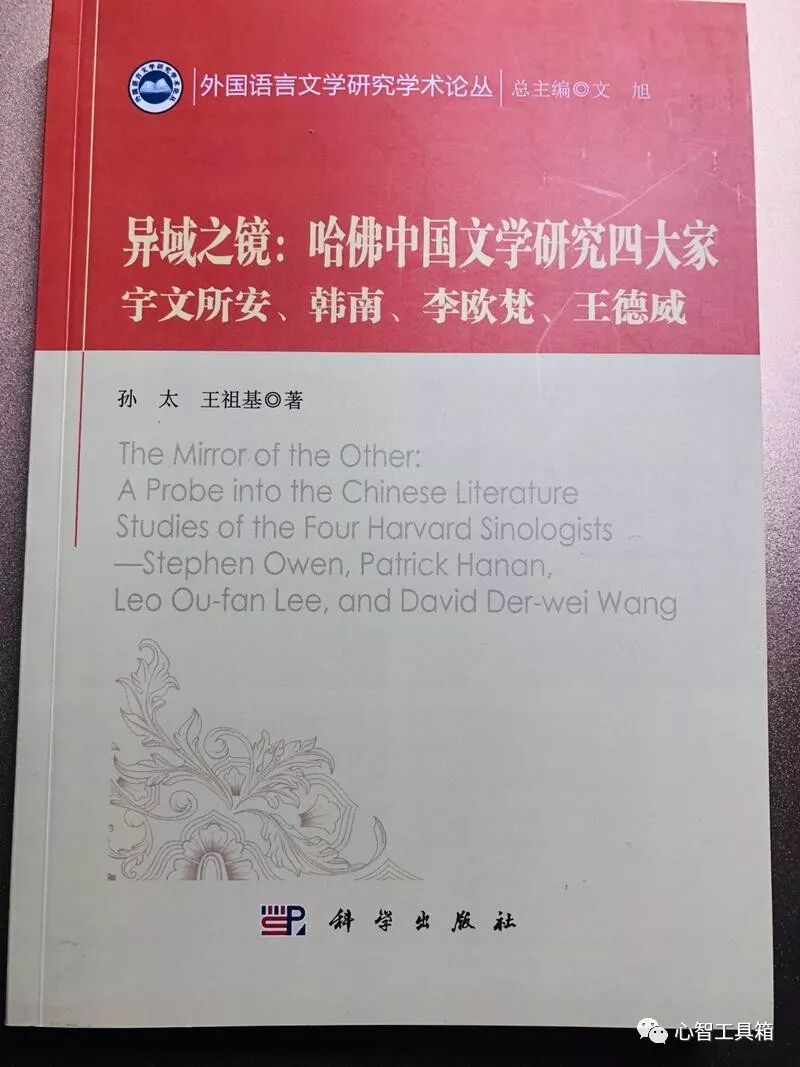 孙太 & 王祖基. 异域之镜:哈佛中国文学研究四大家:宇文所安、韩南、李欧梵、王德威. (科学出版社, 2016). 这本书改编自作者的博士论文。与其说是一篇论文,不如说是一本读书笔记,记录了作者阅读宇文所安、韩南、李欧梵、王德威四位作家著作的心得。这四位作家均在哈佛东亚语言与文明系任教。四位学者,我熟悉宇文所安、李欧梵、王德威。李欧梵、王德威均台湾大学外文系毕业,曾师从夏志清的哥哥夏济安。之后李欧梵受益夏志清良多;王德威与夏志清亦师亦友,被视作夏志清的接班人。张爱玲去世后,公认最懂她的三位“男人”正是夏志清、李欧梵、王德威。其实,还要加上刘绍铭。宇文所安与田晓菲;王德威与夏志清;夏志清与夏济安;夏志清与张爱玲,亦有精彩图书论述。因为在四位大家中,不熟悉韩南,因此2018年重点研读了他的《韩南中国小说论集》(北京大学出版社, 2008)。葛兆光的《域外中国学十论》(复旦大学出版社, 2002)亦可参考。
