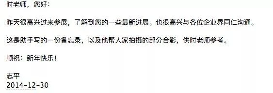 再看另一份新手备忘录。这是四年前,某新同事入职不久,跟我参加会议回来后写的备忘录。为了说明问题,我将该备忘录去掉隐私信息,全文摘录如下: