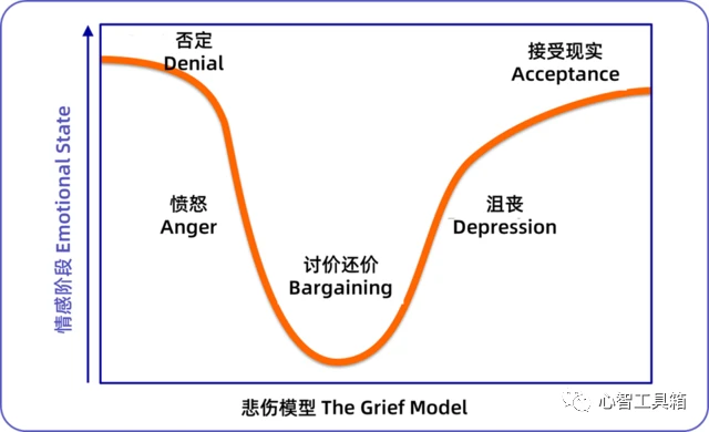 其中,最关键的一个知识点:DABDA 模型。该模型是灾难心理学一个重要研究成果,它指的是多数人都会经历的 5 个情感反应阶段。