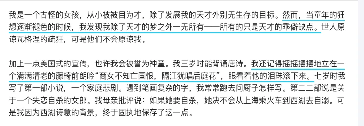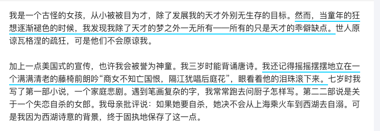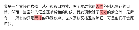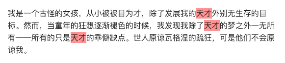发现,张爱玲的文本前后呼应做得不错。开头高频出现天才,结尾响应。
