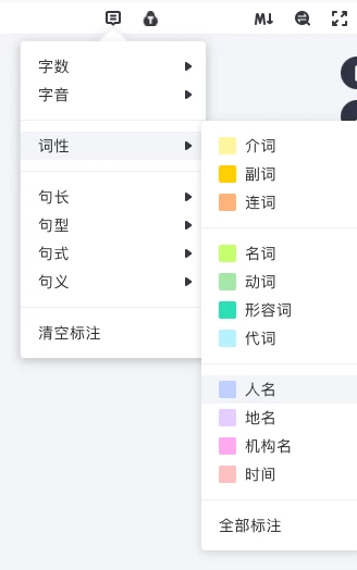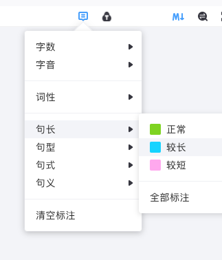 对于写作者来说,最推荐使用「智能标注」的「词性标注」与「句长标注」两个功能。