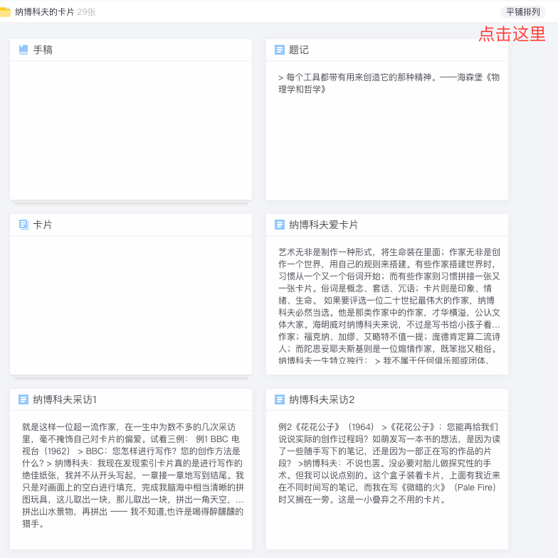 为了强化「父子卡片」的概念,写匠上线了一个新功能:「顺序排列」与「平铺排列」。