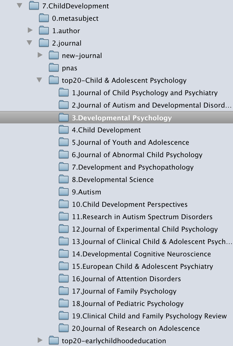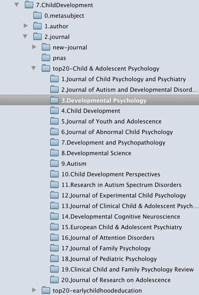 如果你实在精力旺盛,Child Development 那么多儿童发展科学领域的顶级期刊等着你读。比如,这是我订阅的 Top20 期刊: