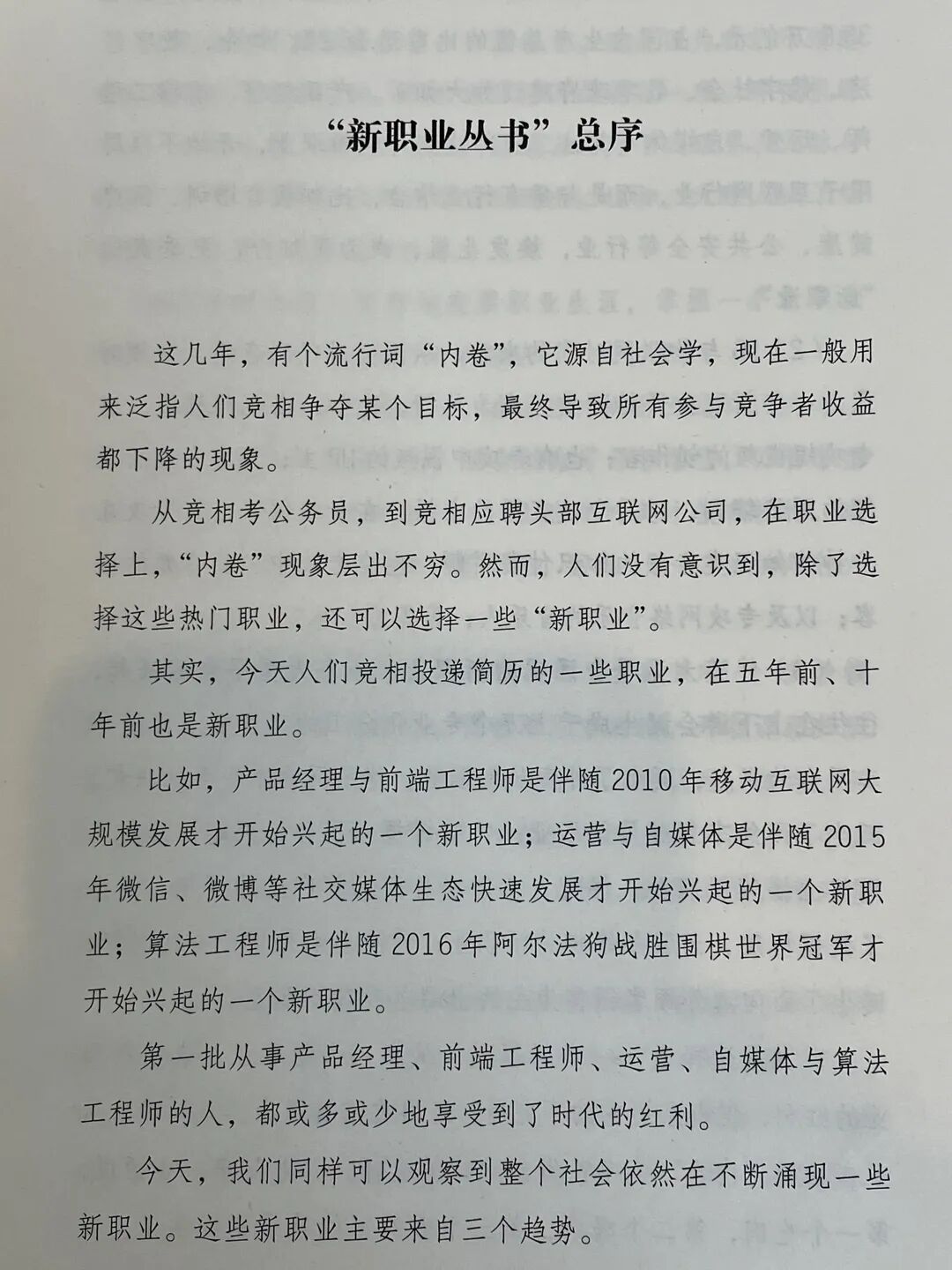 21 世纪,各种新职业层出不穷,然而,我们头脑中还停留在 10 年前、20 年前的认识。以下,是我给新职业丛书写的总序。