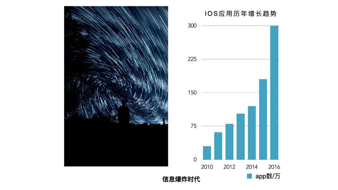 如果你拥有上帝之眼,能够统计出人类在「现实世界」中生产出的所有信息量,你会发现,从 2010 年前后,人类信息量步入了一个新的增长期。每一天,数亿智能手机联系在一起,生产着各种文字、图片、音频与视频。新学科新科技喷涌而出,高引用论文 2015 年高达 10 万篇,短短几年内,深度学习、光遗传学、基因编辑技术席卷天下,十年间新增数百个新学科。又是短短几年内,App Store 应用数量从零到 300 万;微信公众号数量从零到 1000 万。每个新学科、每篇高引用论文、每个 App ,每个微信公众号又是一个新的「信息源」,继续引爆第二轮信息爆炸。