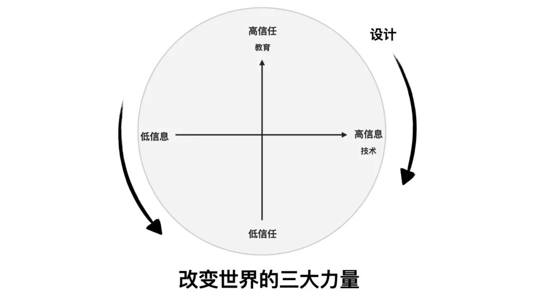 正如前文所述,暴力总是发生在负信任、负信息象限。如今信息与信任流通加速,人类社会变得日益温和,与暴力相对应的另一批力量成为社会主流,它们就是改变世界的三大力量:教育、技术与设计。