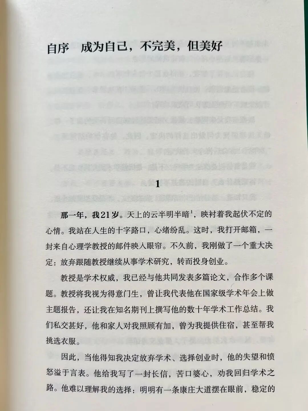 因此,正如《成长的心智》自序所言,我在 21 岁时选择创业,心中格外不舍,熟悉我的师友也很不理解。自序中提到,一位心理学教授给我写了一封长长的邮件,劝我回头。